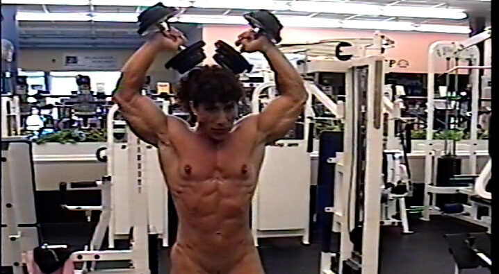 Nude workout in the gym. Biceps, shoulders, abdominals, squats, pullups and more. Variety of locations. Top condition.